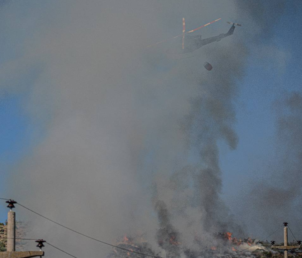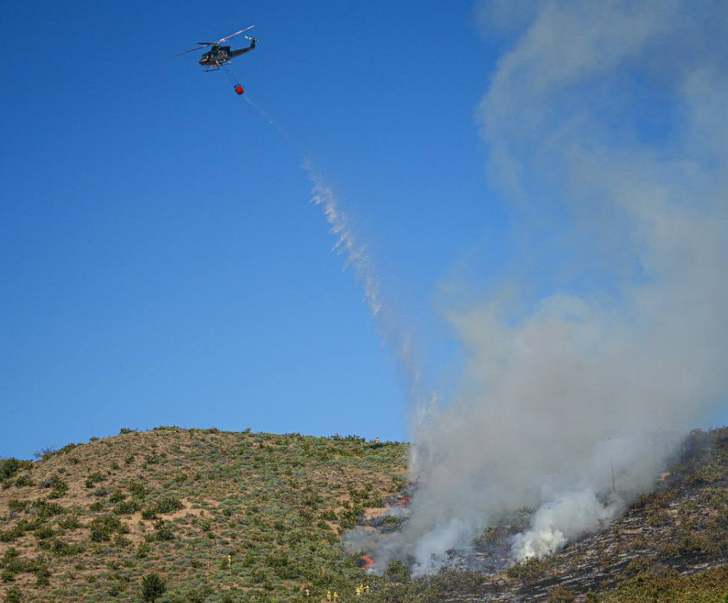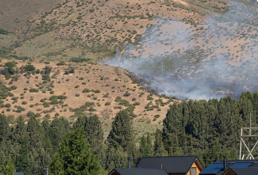 Incendio forestal afectando arbustos, pastizales y coirones.